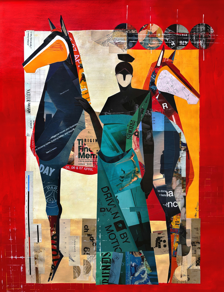 Universality permeates his subjects, drawing inspiration from diverse sources like movies, books, comics, and mythology. Embracing the infinite realm of knowledge, Rajesh humbly incorporates wisdom from various mediums. His current body of work showcases a distinctive style that sets it apart, blending cutting and pasting techniques with minimal paint usage. It expands the boundaries of collage and mixed media, breathing new life into traditional art forms.