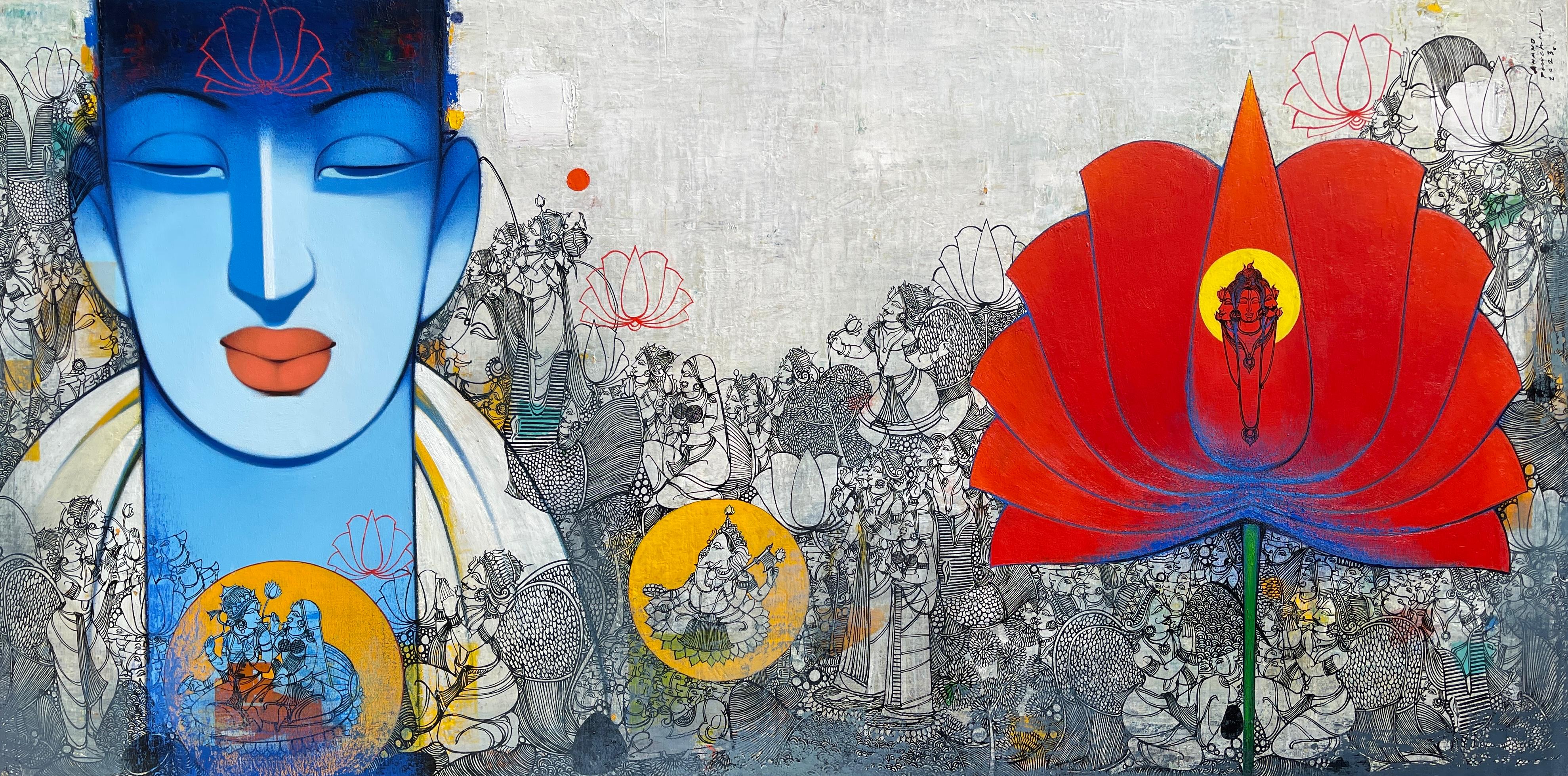 Anand Panchal (b. 1973, Latur, Maharashtra) is a contemporary Indian artist renowned for his evocative depictions of rural life, spiritual narratives, and mythological themes. Born into a family of woodcarvers, Panchal’s creative path was carved early, nurtured by supportive teachers and a deep connection to his cultural roots.