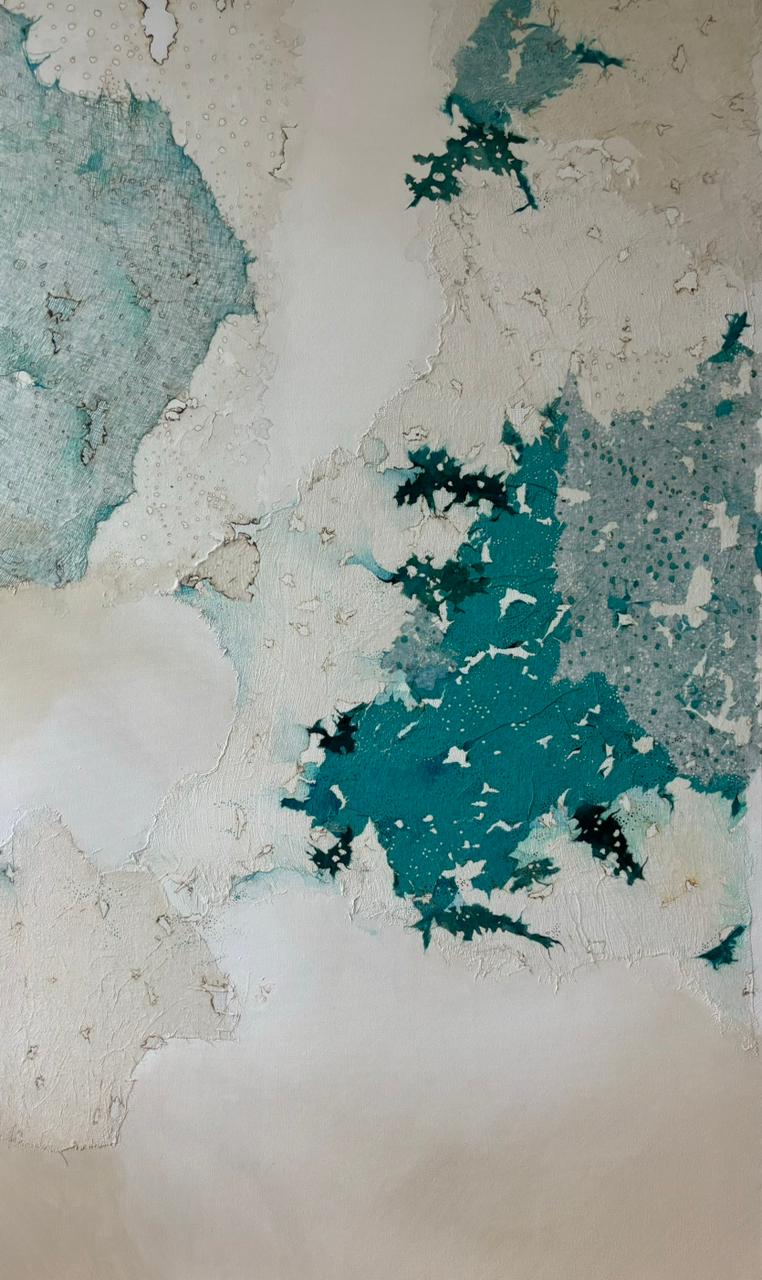 Madhuri works intuitively with gauze rice paper and induces colours with dyes and burnt paper. Textural variations are created to reveal details and complexities within the image. Materials are deconstructed ripped burnt and dyed and it is during this process that the clothes papers and colours form a unique abstract pattern. She finds inspiration in everything nature its the icy landscapes of Sweden that prompted her to introduce whites and blues in her recent works. Her palette gravitates towards the use of sea green blue purple pale yellow and burnt orange soft hues that she associates with a sense of calm. She has held various solo shows at Bajaj Art Gallery Devlalikar Art Gallery and Kala Ghoda Walk in Gallery to name a few of them. In addition she has actively participated in multiple group shows across borders like Germany and Switzerland. Kathe has been facilitated by prominent art critics institutions and art houses.