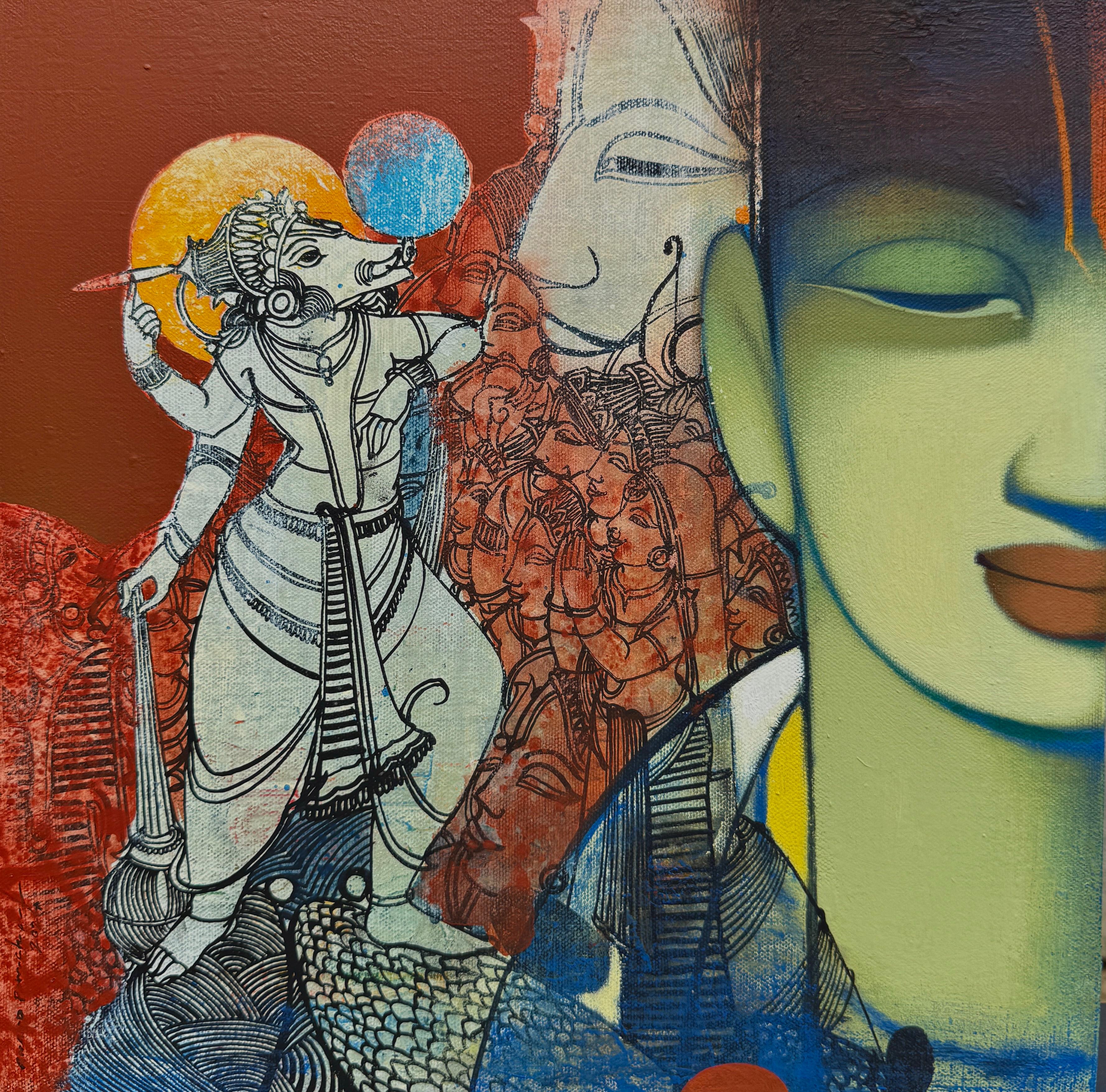 Anand Panchal (b. 1973, Latur, Maharashtra) is a contemporary Indian artist renowned for his evocative depictions of rural life, spiritual narratives, and mythological themes. Born into a family of woodcarvers, Panchal’s creative path was carved early, nurtured by supportive teachers and a deep connection to his cultural roots.