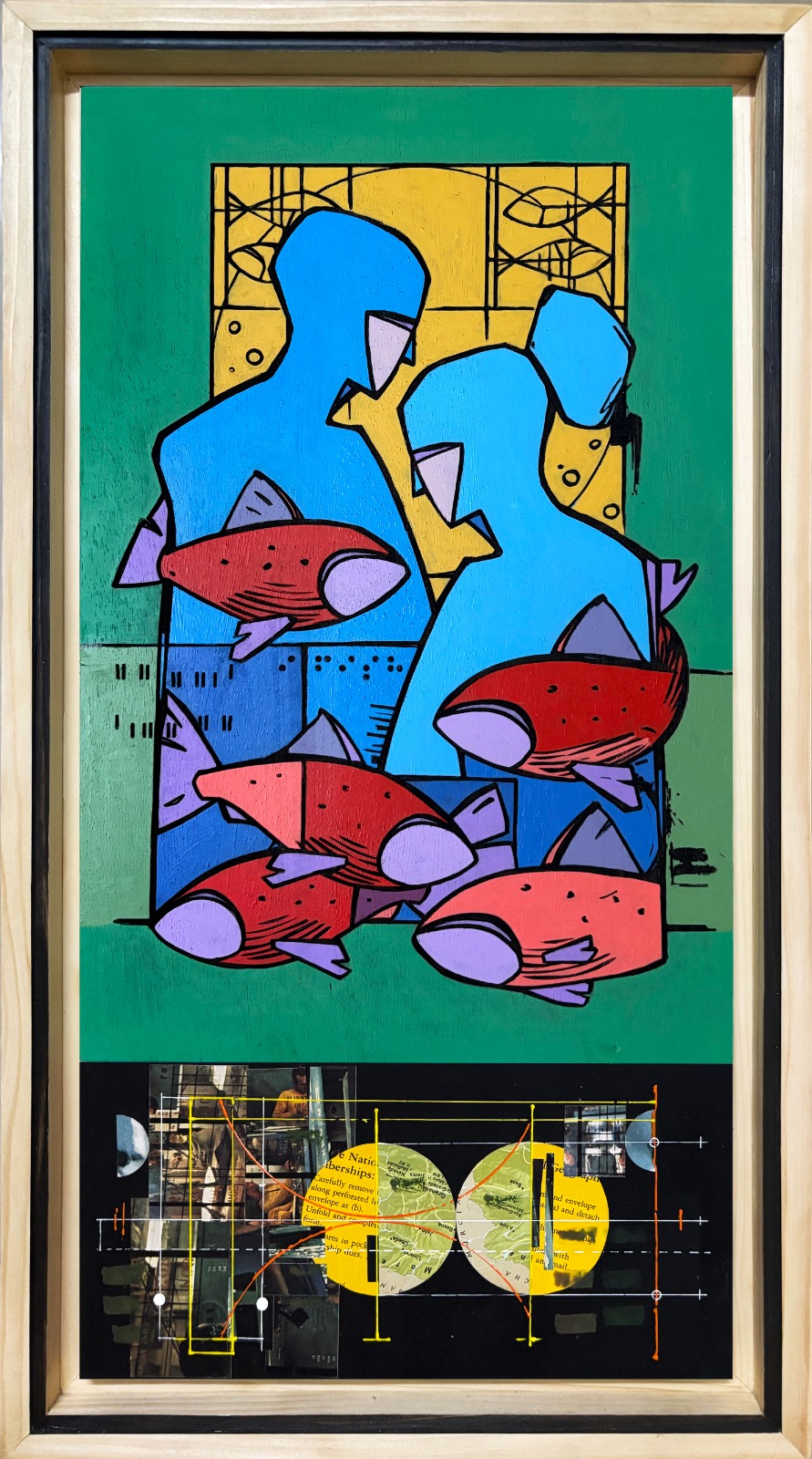 Universality permeates his subjects, drawing inspiration from diverse sources like movies, books, comics, and mythology. Embracing the infinite realm of knowledge, Rajesh humbly incorporates wisdom from various mediums. His current body of work showcases a distinctive style that sets it apart, blending cutting and pasting techniques with minimal paint usage. It expands the boundaries of collage and mixed media, breathing new life into traditional art forms.