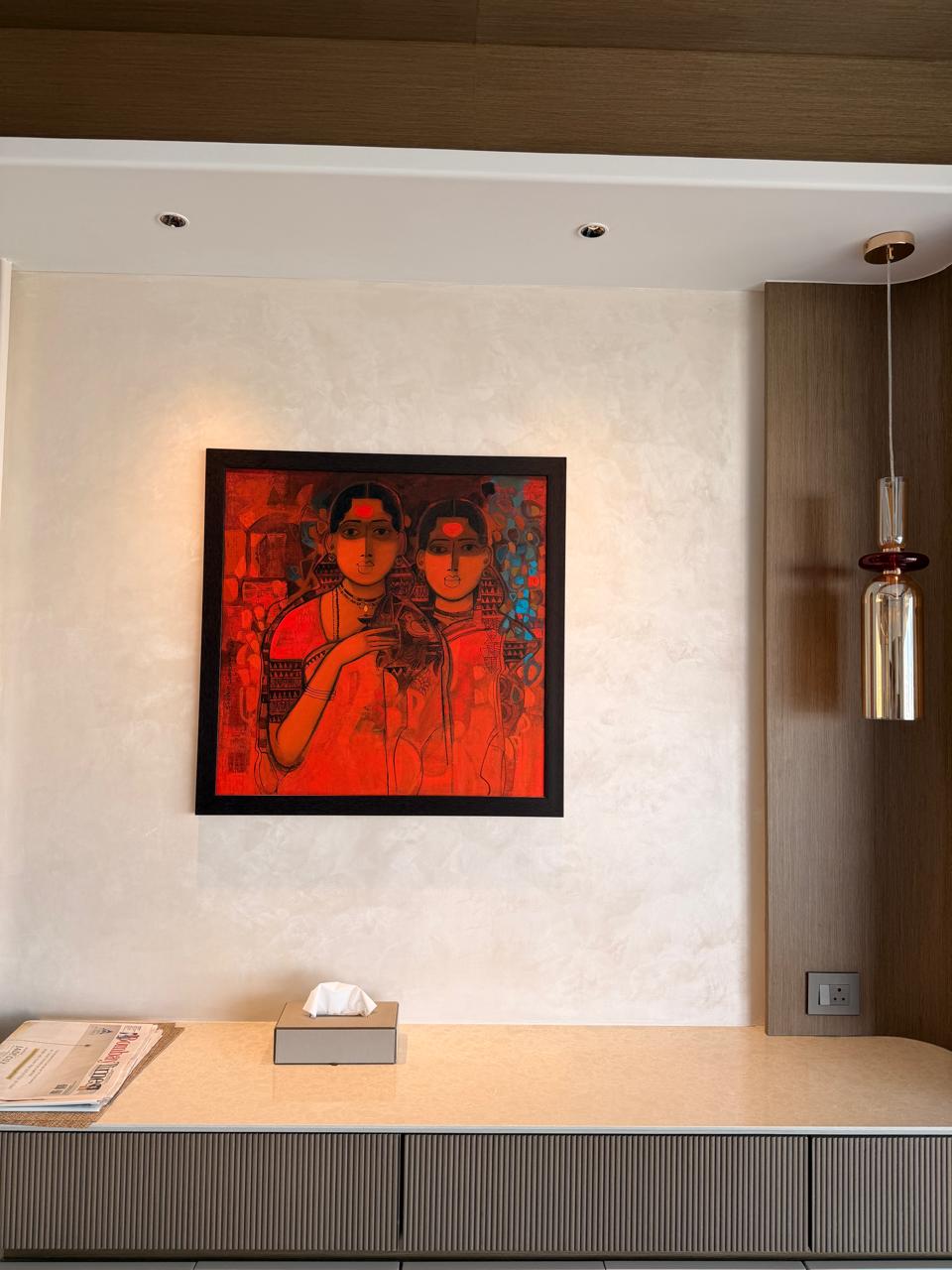 Sachin Sagares works are a heartfelt tribute to rural life echoing the grace strength and spirit of Maharashtras women. In Sachin Sagares world the ordinary becomes extraordinary. Women in traditional saris pause mid-chore caught in quiet reflection or festive movement their stories told in the rich rhythm of brush and color. Born and raised in Maharashtra Sachin paints not from imagination alone but from memory emotion and a deep-rooted connection to his homeland. His canvases speak of sunlit courtyards the rustle of cotton saris the scent of earth after rain a world that is at once intimate and universal. Sachin Sagares journey began in the pastoral landscapes of rural Maharashtra where life unfolded slowly and vividly. Encouraged by an early love for drawing he later trained in fine art mastering both oils and acrylics. What he carried with him from his education wasnt just technique but a clarity of purpose. He wasnt interested in grand themes or faraway subjects. He wanted to paint what he knew best the women who shaped his world the rituals that marked the seasons the small but sacred acts of daily life. Sachin builds his compositions layer by layer using bold colors and textured brushwork to bring his subjects to life. The women he paints may seem serene but their stillness holds stories of endurance of dignity of joy quietly lived. There is reverence in every detail from the drape of a sari to the tilt of a head to the interplay of shadow and light. His process is slow intuitive deeply personal.