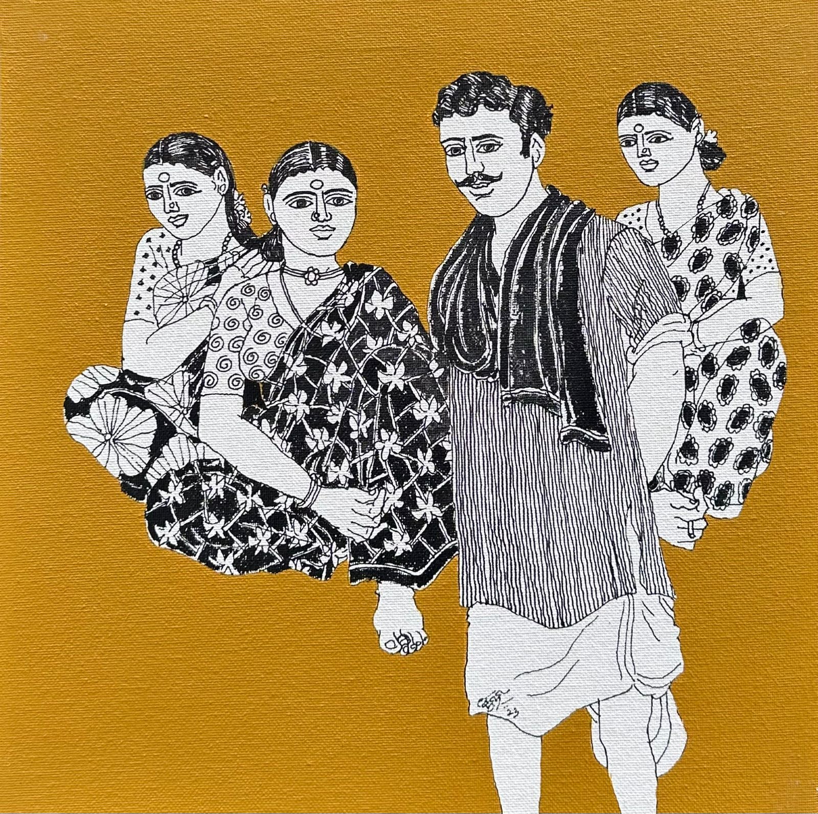His figures, especially the women, rise from the canvas with dignity and defiance. No longer symbols of poverty or silence, they become matriarchs of change - stoic, beautiful, unbending. Aelay’s recurring muse is Poolamma, the ‘mother of flowers’, a central figure in Dalit festivals, who becomes in his hands both a symbol of divinity and a bearer of lived resilience.