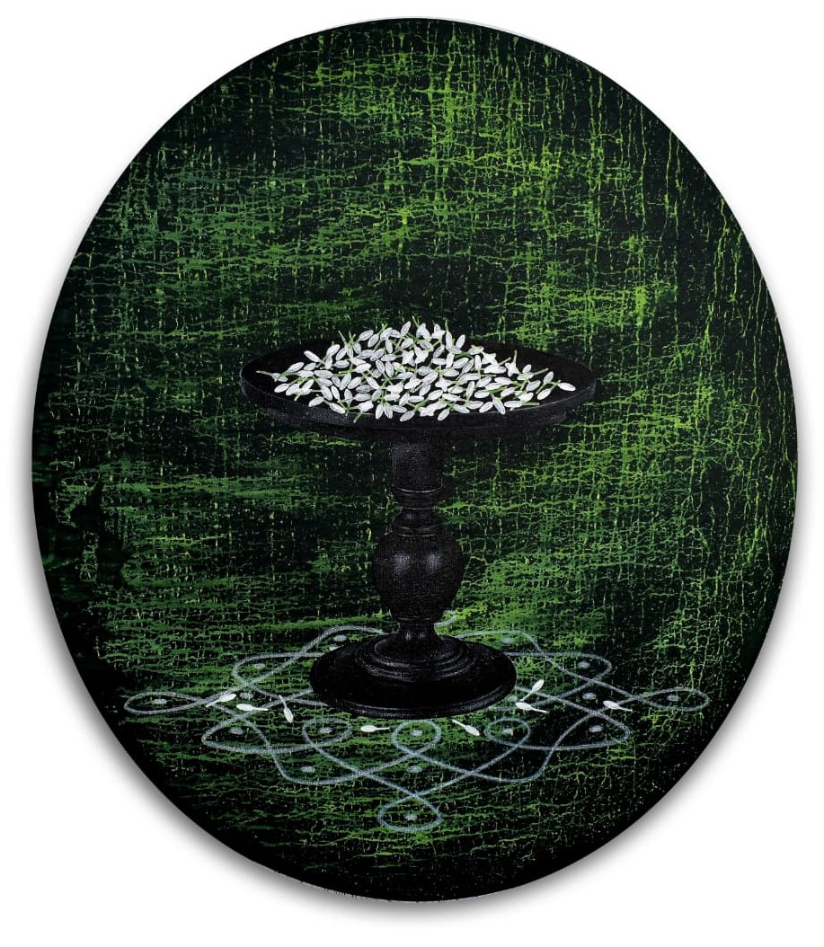 Raju’s conceptual, surrealistic paintings offer a powerful reflection on contemporary life, using familiar symbols like chairs, sofas, and animals to explore themes of power, authority, and human behavior. His large-scale compositions draw viewers into layered narratives that balance thought, emotion, and social commentary. Born in 1989 in Baruva, Andhra Pradesh, Raju holds a BFA from Andhra University (2011) and an MFA from the Government College of Art and Crafts, West Bengal (2013). He has participated in several group exhibitions and continues to be recognized for his compelling visual language.