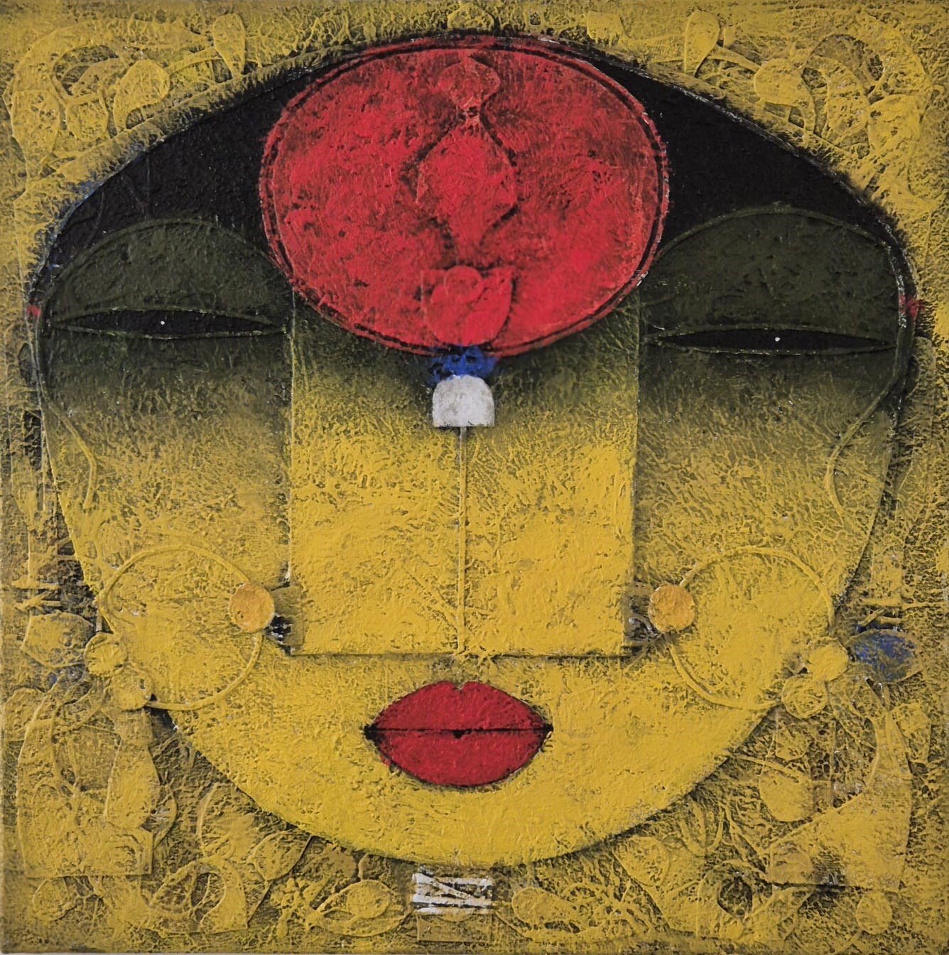 Shakti symbolism, rich traditions of Bengali tribal lore, and folk traditions define the work of Basuki Dasgupta. With his poignant and sensitive works, he invites us to dive deep into what connects us as human beings. He cajoles us to see that we are more similar than we realize whether it is with the person on the other end of the belief spectrum or the other end of the world. The women, in Basuki Dasgupta's paintings, are inspired by goddesses in his own life as they live with incredible poise and grace. The women take prominence in most of his works with eyes half-closed and their countenance very still. His work is a blend of figurative and abstract; with heavy texture and embossing, motifs from architecture, abstract shapes and forms, and mixed media. Texture is his first priority; a physical experience he holds dearly. He plays with paper pulp, hard boards, and thick acrylic paints to achieve the unique texture and patterns you see in his works. When he runs his fingers against his own paintings today, he is reminded of all those intimate memories of paintings and murals he experienced in the famed terracotta temples of Bishnupur, West Bengal. His creations are an attempt to explore the dichotomy between nature and mankind, rural and urban, or the human and divine. For, there is always a constant war of compassion and truth over greed and ego.