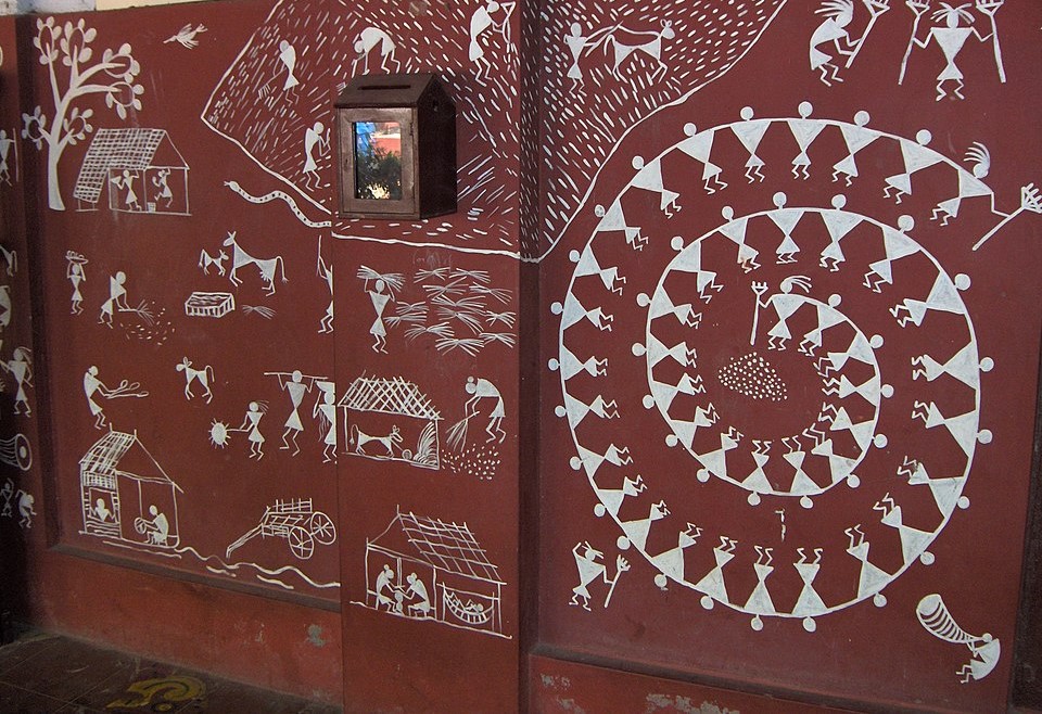 Near the Sahyadris in Maharashtra, Warli art lives in fleeting earthy circles and triangles, documenting monsoon dances, daily toil, and harvest. The Warli’s restricted palette (rice paste on red mud) is a local code-sacred in simplicity. Jivya Soma Mashe, a Warli pioneer, transformed a domestic, ephemeral style into works adorning walls of global museums-yet always returning home to the monsoon.