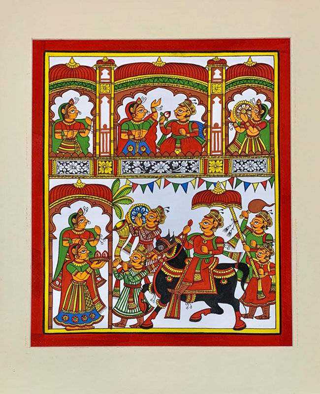 From Telangana, Cheriyal is playful, bold, and laden with local satire. Artists like D. Vaikuntam and Padma Shri awardee D. Shyam Prasad bring the tradition to national galleries, bridging village tales and urban narratives with scroll and brush.