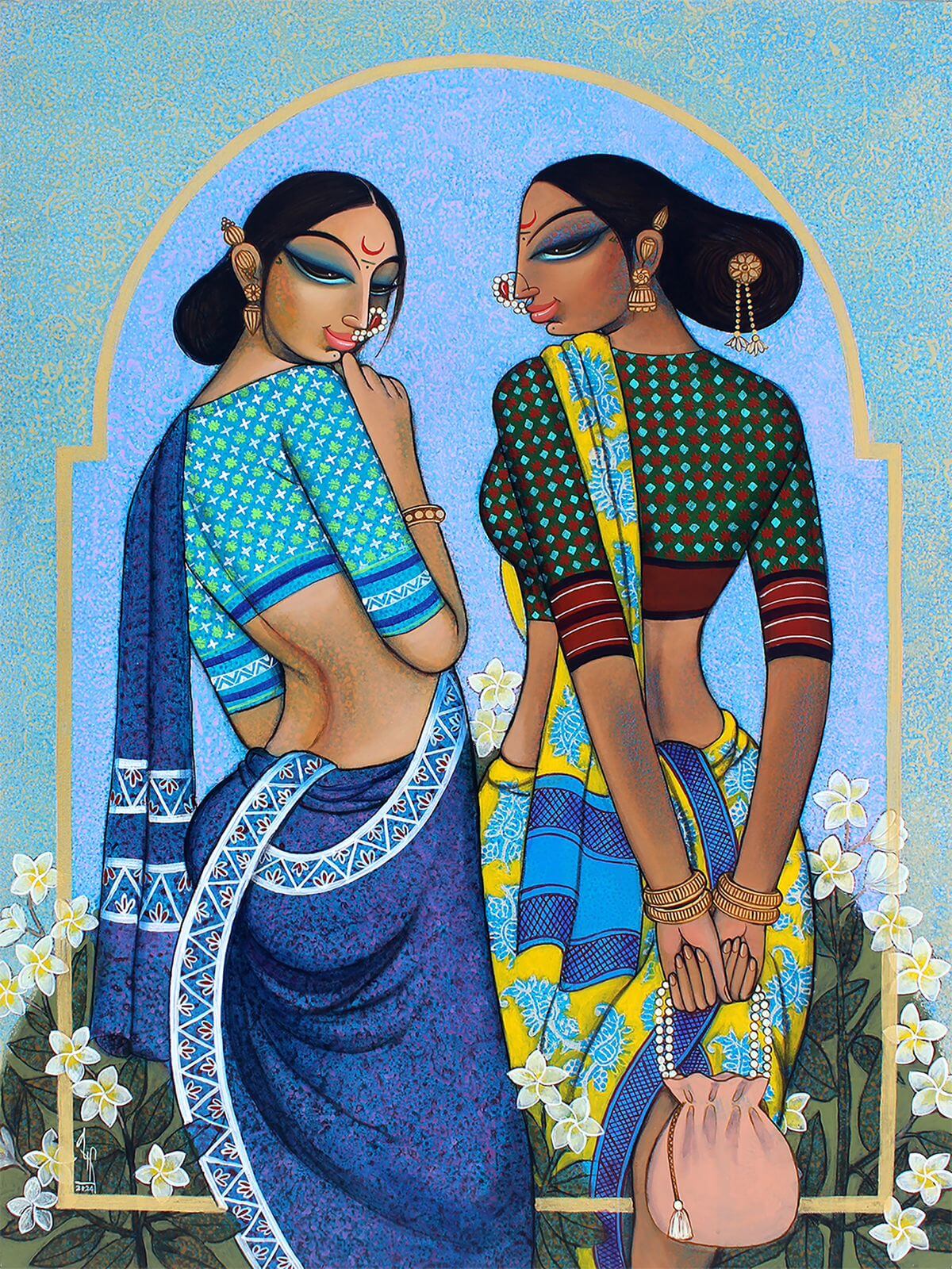 The diversity of expression possible with acrylic painting on canvas explains why contemporary Indian artists embrace it. Different styles ask and say different things about the painter & collector.